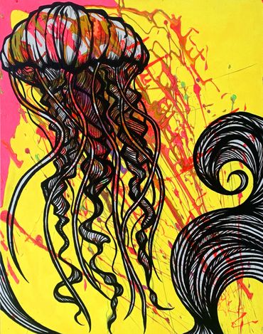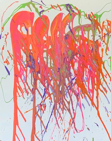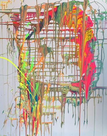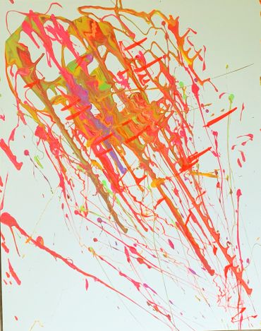 Something that begins as a free flow dance between colors and paint on the canvas (the unconscious). Is shaped later by the interpretation and intention of the creator (the conscious).